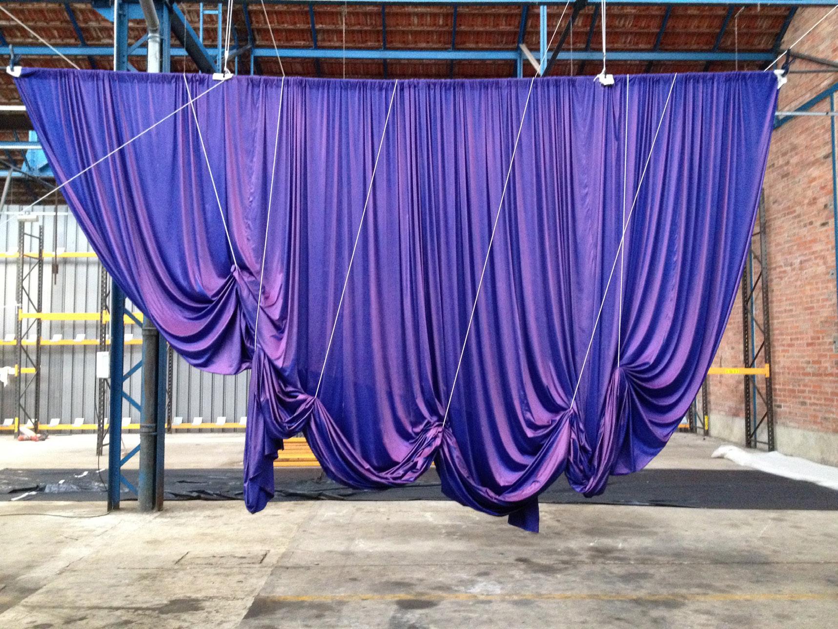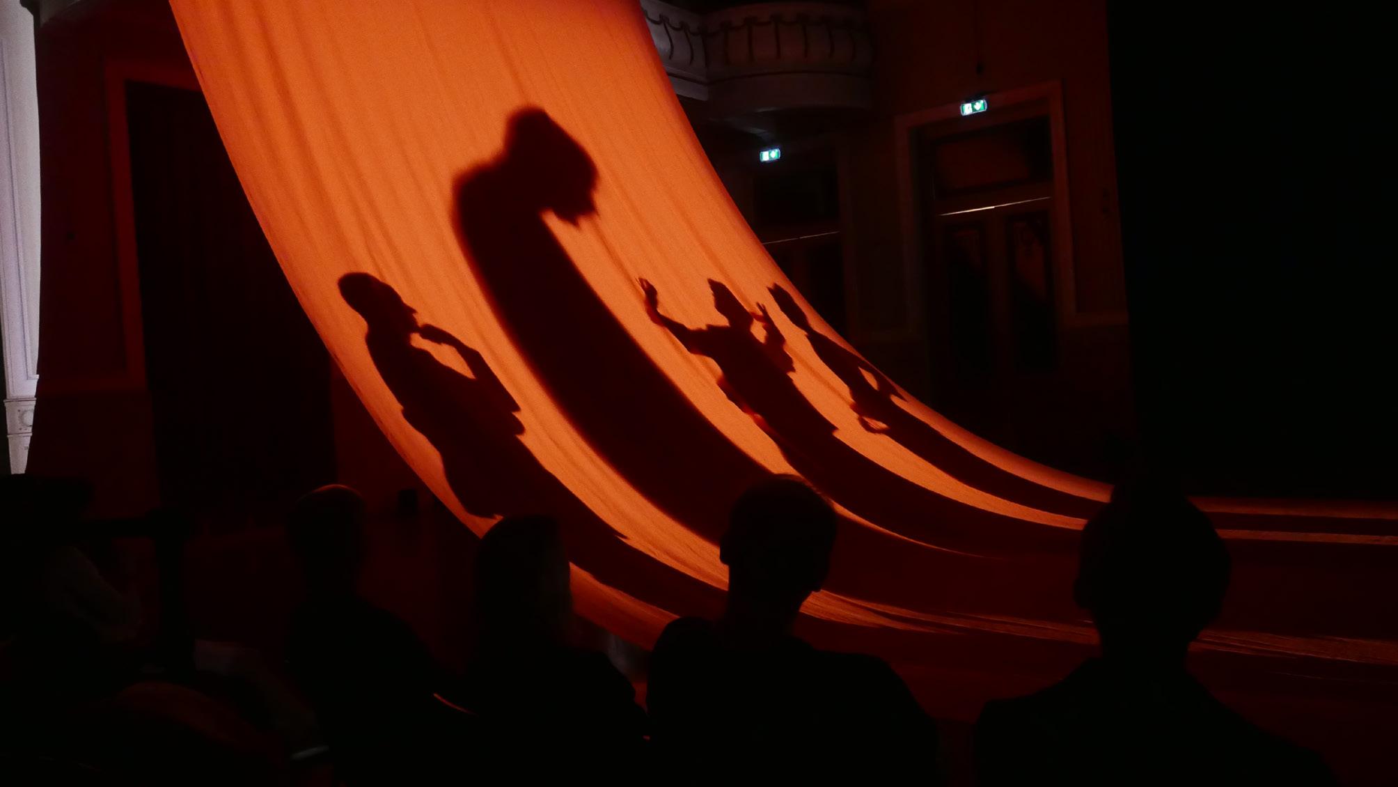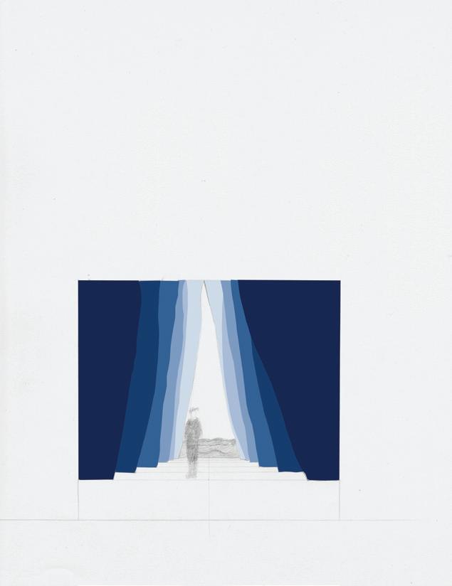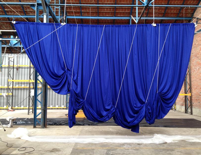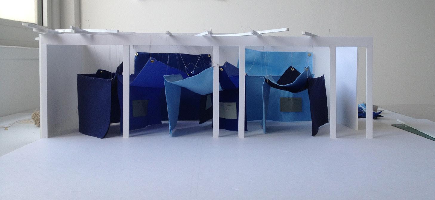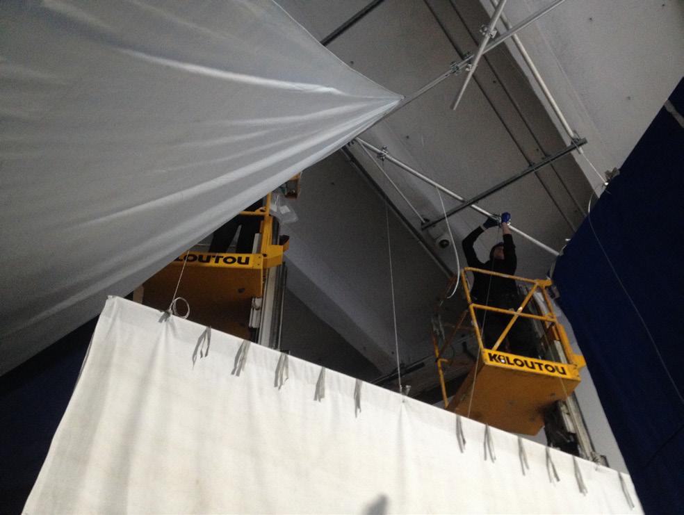 Conception et réalisation d’une scénographie en tissu 10 toiles suspendues, projection de films 16 mm tournés sous l’eau Dessin technique de l’espace et montage
