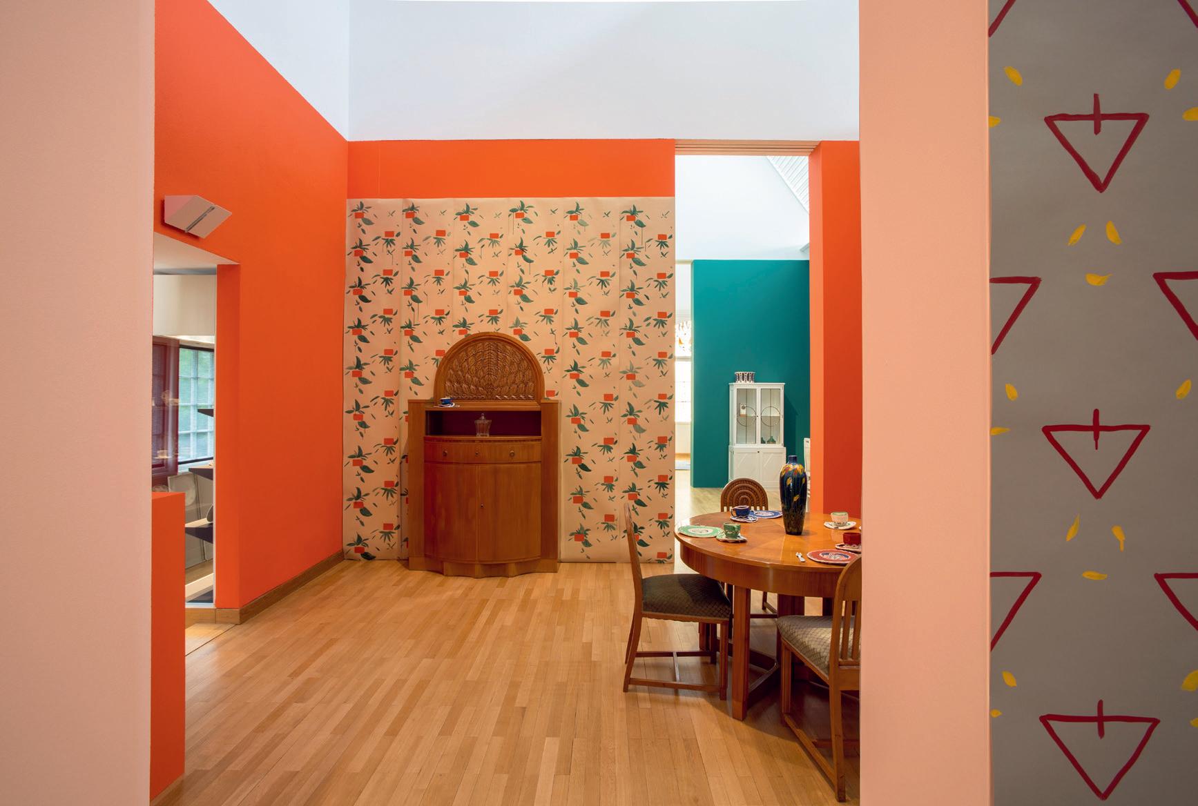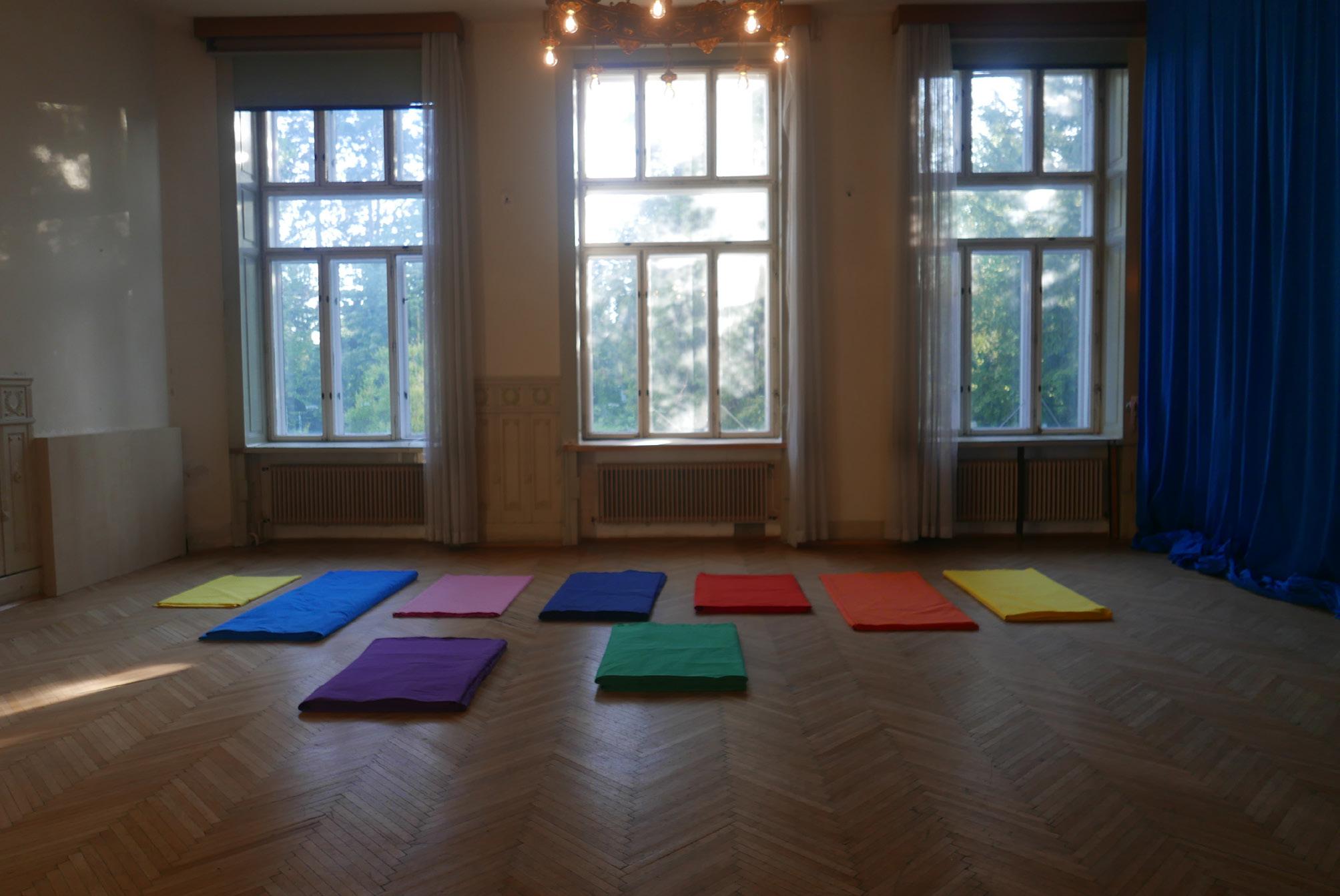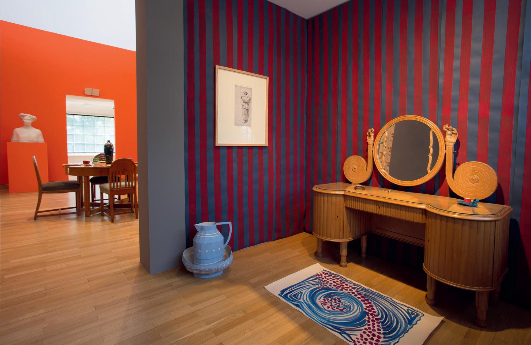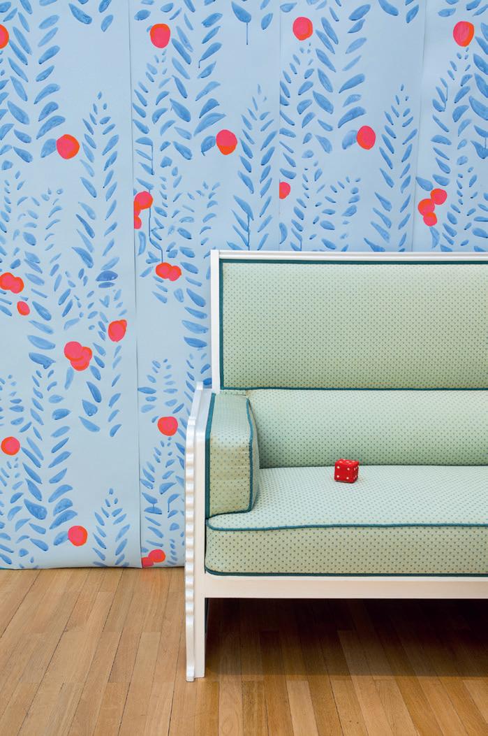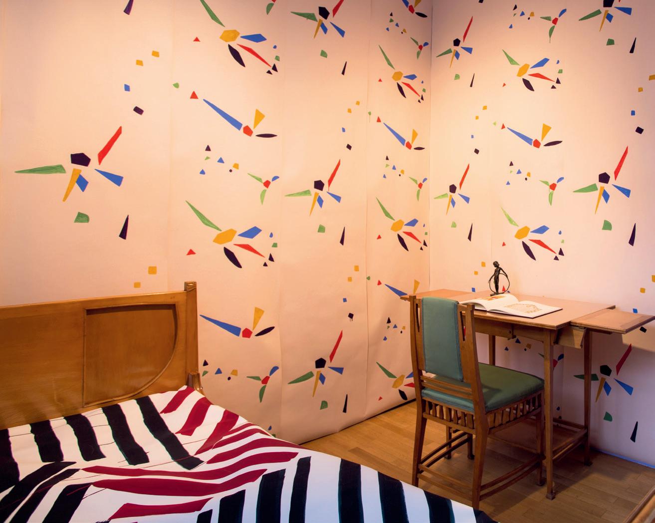 Conception et réalisation d’une scénographie pour une exposition avec la collection Jugendstil de mobilier et d’objets de l’Institut Mathildenhöhe, conception et réalisation de papier-peints à la main, d’objets en papier, de tapis peints