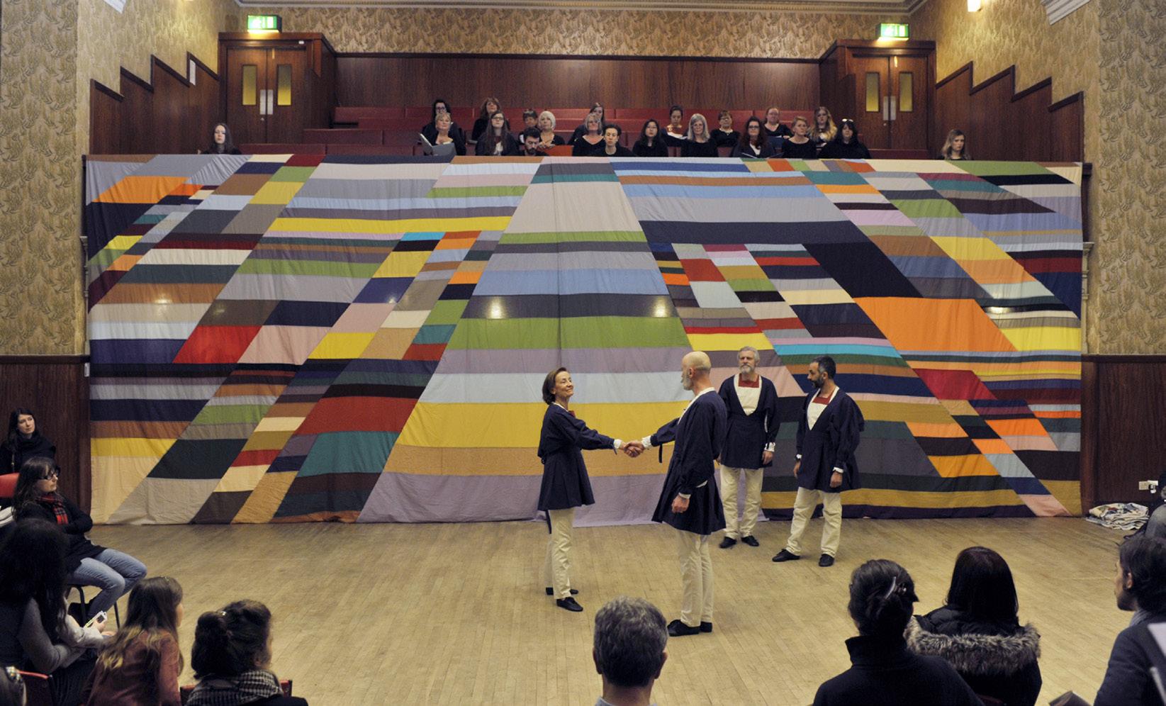 Coordination et production des performances, adaptations scéniques aux différents lieux, dessins de dispositifs d’exposition