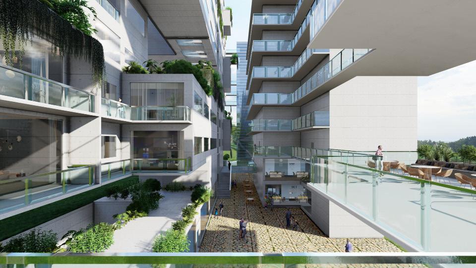 Courtyard condition allowing residents to recieve natural sunlight and ventilation. At the same time, it also allows for a gethering space and a safe environment for children to play.