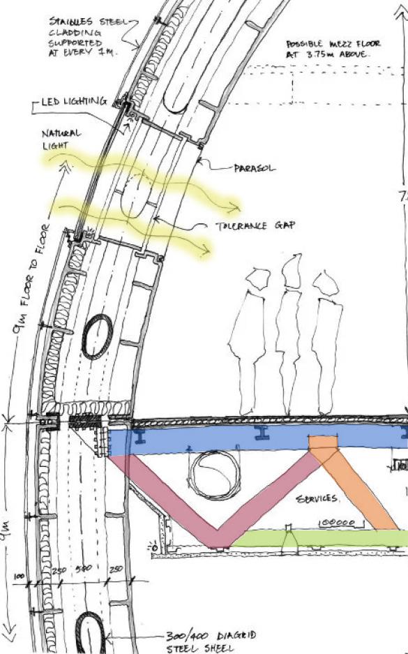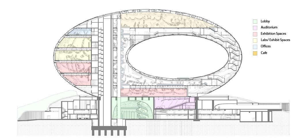 Building shell was designed to allow excessive sunlight to filter through its porous façade, optimizing light penetration to enhance both aesthetic appeal and thermal comfort.