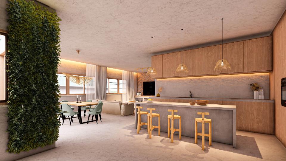 Interior view of the three bedroom units. Wood is used throughout the majority of the interior spaces due to its sustainability.