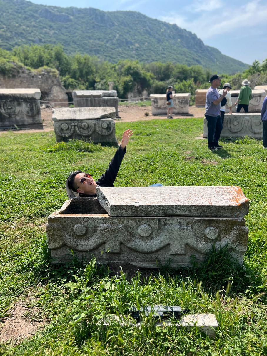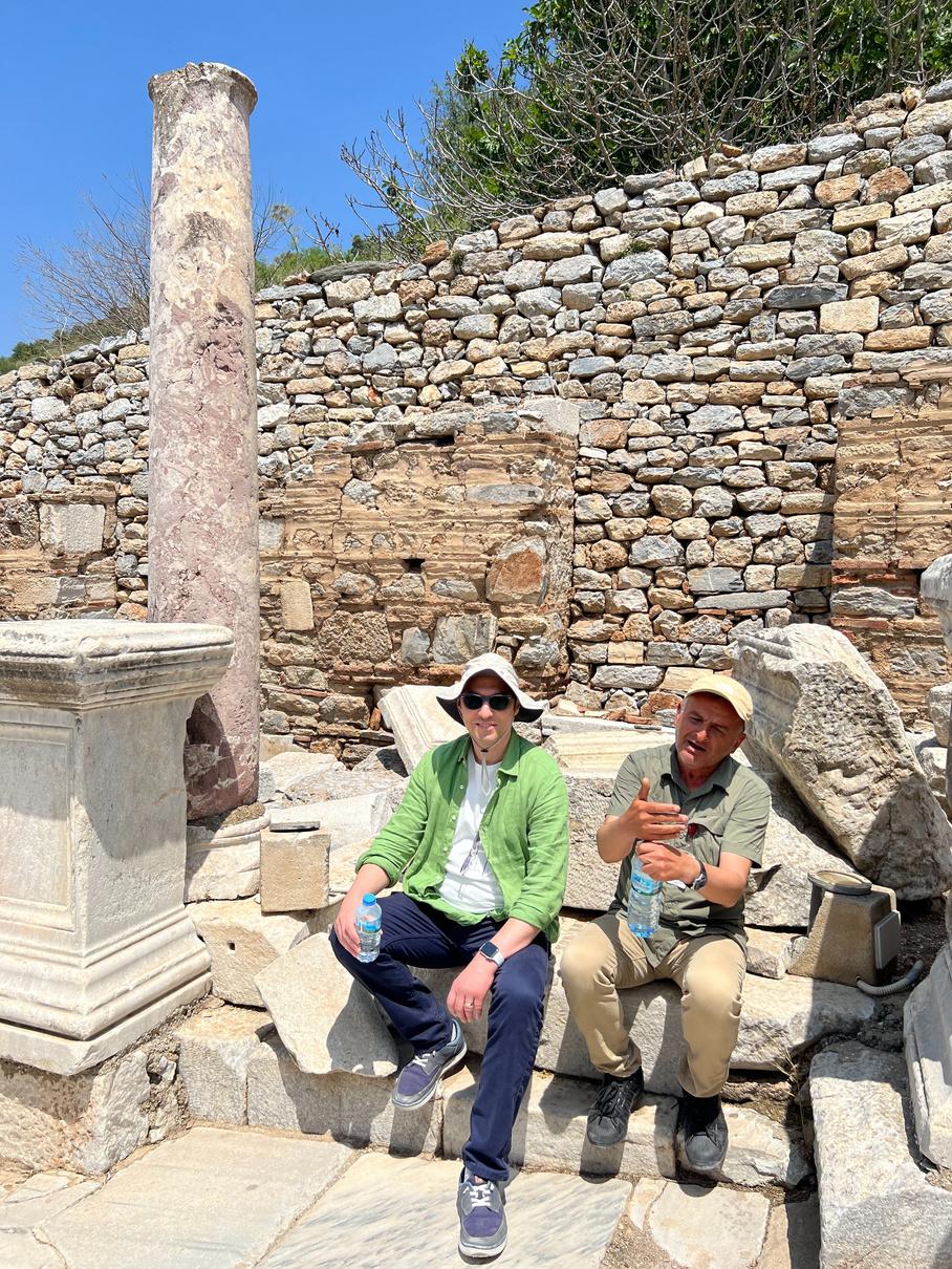 Gökhan Hotamışlıgil tuning the bağlama gifted to him.