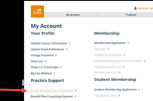 2) utilize the Dental Benefits Issue Submission form on cda.org to outline their concerns, or