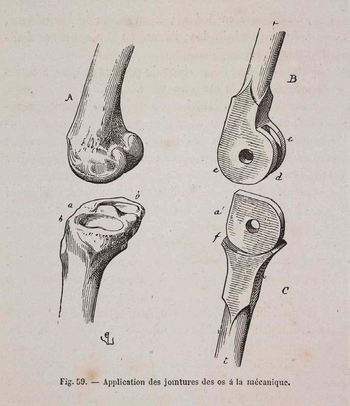 “Mechanical Application of Bone Joints” Eugène-Emmanuel Viollet-le-Duc, 18793 This drawing by the architect represents their functionalist and mechanistic biological design thinking, which abstracts and simplifies human bodies into a structural form. 「骨関節の機械的応用」ユ ジェーヌ・エマニュエル・ヴィ オレ・ル・デュック、18793 この建築家によるドローイン グは、機能主義的かつ機械論 的な生物学的デザイン思考を 表しており、人体を構造的な 形に抽象化し単純化する。