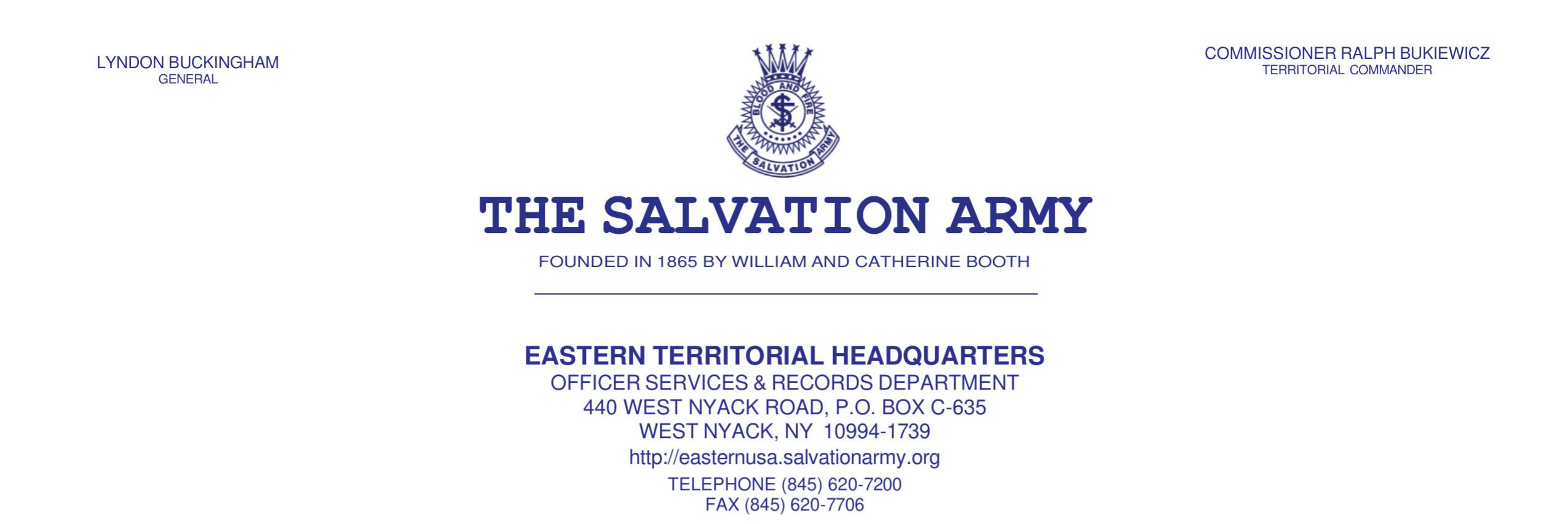 The Salvation Army - Eastern Territory (Officers) Group Customer # 121080 Report # Sub Code Branch
