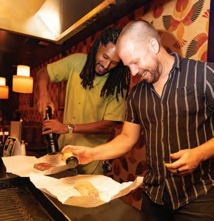 SAIGON ALLEY KITCHEN + BAR This hip restaurant and bar serves modern versions of Vietnamese street food, such as a “Pho-rench” dip (a French dip with pho flavors) and a “banh mi” burger (a rib-eye burg er garnished with pickled daikon and carrot on a baguette). A big draw is the $3 happy hour, featuring snacks like banh mi taco, fish sauce chicken wings, and taro fries and sugarcane shrimp. 1801 L St.; (916) 758-6934; saigonalley.com. L–D. Vietnamese. $$