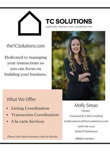 Sacramento Real Producers • 65 @realproducers Skate into Homeownership with the Lucia Lending Team Our way is the FAIR WAY. NICHOLAS M. LUCIA Certified Mortgage Planner NMLS# 489401 Fairway Mortgage NMLS# 2289 3400 Douglas Blvd., Suite 260, Roseville, CA 95661 916-730-6339 nick.lucia@fairwaymc.com www.lucialendingteam.com I work with Matthew and his team regularly, multiple times a month and couldn't be happier with the services he provides. He is always very professional, punctual, and responsive. Working with him has been smooth and easy every step of the way! His work is professional quality and always consistent. would definitely recommend Dynamic Cinema Productions to anyone looking for professional photography and/or video production. Sabrina Khal - Project Manager SERVICES: 530-417-6170 DynamicCinemaProductions.com/real-estate HIGH QUALITY STORY TELLING PHOTOGRAPHY & AERIAL • VIDEO TOURS • 3D MATTERPORT AND 2D FLOOR PLANS BUSINESS COMMERCIALS • PORTRAITS • WEDDINGS & EVENTS • TOURISM AND MORE Founder / Creative Director One-Stop Local Shop Personalized Gift Baskets & Products for Closing Gifts Front Door Mats ● Engraved Cutting Board Utensils ● Coasters ● Shirts ● Aprons Dish Towels ● Wine Boxes ...just a few of our amazing line of products we can customize. Rosanne Kellogg (916) 367-3090 SEASONS-CHANGE.COM rkellogg@seasons-change.com © 2021 The Northwestern Mutual Life Insurance Company. All rights reserved. 720 East Wisconsin Avenue, Milwaukee, Wisconsin 53202-4797 (414) 271-1444. Northwestern Mutual the marketing name for The Northwestern Mutual Life Insurance Company (NM) (life and disability Insurance, annuities, and life insurance with long-term care bene ts) and its subsidiaries, including Northwestern Long Term Care Insurance Company (NLTC) (long-term care insurance), Northwestern Mutual Investment Services, LLC (NMIS) (investment brokerage services), registered investment adviser, broker-dealer, and member of FINRA and SIPC, and Northwestern Mutual Wealth Management Company® (NMWMC) (investment advisory and trust services), federal savings bank. NM and its subsidiaries are in Milwaukee, WI. Jacob LaFond is an Insurance Agent of NM and NLTC. Investment brokerage services provided as Registered Representative of NMIS. Investment advisory services provided as an Advisor of NMWMC. The products and services referenced are ered and sold only by appropriately appointed and licensed entities and nancial advisors and representatives. Financial advisors and representatives and their sta might not represent all entities shown or provide all the products or services discussed on this website. Not all products and services are available in all states. Not all Northwestern Mutual representatives are advisors. Only those representatives with "Advisor" in their title or who otherwise disclose their status as an advisor of NMWMC are credentialed as NMWMC representatives to provide investment advisory services. Depending on the products and/or services being recommended or considered, refer to the appropriate disclosure brochure for important information on the Northwestern Mutual Wealth Management Company, its services, fees and con icts of interest before investing. To obtain copy of one or more of these brochures, contact your representative. Jacob LaFond is primarily licensed in CA and may be licensed in other states.