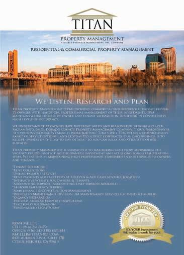 Sacramento Real Producers • 55 54 • October 2023 @realproducers realproducersmag.com © 2021 The Northwestern Mutual Life Insurance Company. All rights reserved. 720 East Wisconsin Avenue, Milwaukee, Wisconsin 53202-4797 (414) 271-1444. Northwestern Mutual the marketing name for The Northwestern Mutual Life Insurance Company (NM) (life and disability Insurance, annuities, and life insurance with long-term care bene ts) and its subsidiaries, including Northwestern Long Term Care Insurance Company (NLTC) (long-term care insurance), Northwestern Mutual Investment Services, LLC (NMIS) (investment brokerage services), registered investment adviser, broker-dealer, and member of FINRA and SIPC, and Northwestern Mutual Wealth Management Company® (NMWMC) (investment advisory and trust services), federal savings bank. NM and its subsidiaries are in Milwaukee, WI. Jacob LaFond is an Insurance Agent of NM and NLTC. Investment brokerage services provided as Registered Representative of NMIS. Investment advisory services provided as an Advisor of NMWMC. The products and services referenced are ered and sold only by appropriately appointed and licensed entities and nancial advisors and representatives. Financial advisors and representatives and their sta might not represent all entities shown or provide all the products or services discussed on this website. Not all products and services are available in all states. Not all Northwestern Mutual representatives are advisors. Only those representatives with "Advisor" in their title or who otherwise disclose their status as an advisor of NMWMC are credentialed as NMWMC representatives to provide investment advisory services. Depending on the products and/or services being recommended or considered, refer to the appropriate disclosure brochure for important information on the Northwestern Mutual Wealth Management Company, its services, fees and con icts of interest before investing. To obtain copy of one or more of these brochures, contact your representative. Jacob LaFond is primarily licensed in CA and may be licensed in other states. Reduce Investing Fears, Using Asset Allocation What is it Asset Allocation: All investments carry some level of risk, asset allocation spreads your investments across various asset classes. This means, you won’t have all top performers all the time, but you also wont have all the worst performers either! This cuts down on some of the emotions people feel when the markets go up and down. Three steps to get started: • Define your goals (Purpose of the investment) • How much time (Time Horizon) • Define tolerance for risk Over time these needs will change. Consult with an advisor on a regular basis! Jake M. LaFond Financial Advisor CA License: #0H39908 916-218-4406 • jakelafond.nm.com ChucksSeptic.com Our Technicians Are Standing By. Call Now! 888-8-CHUCKS (824-8257) Septic Inspections of Rural Properties. Pumping, Inspections, and Repairs. Placer, Sacramento, & el Dorado Counties. Trusted Since 1968. Make A Difference IN THE LIFE OF A LOCAL FOSTER CHILD, AT-RISK YOUTH, OR STRUGGLING FAMILY VOLUNTEER TODAY! Learn more at casaplacer.org | 530-887-1006 Sherene Gray NMLS #302159 Mobile 916.798.8026 sherene@pointequity.com PointEquity.com/5StarTeam 925 Highland Pointe Dr. | Suite 330 | Roseville Fast and accurate Pre-Approvals, available evenings and weekends. Efficient Communicative Honest