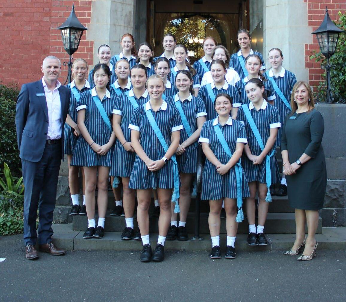 2023-2024 Blue Ribbons with Chris Maguire (Director of Student Wellbeing) and Principal, Adelina Melia-Douvos