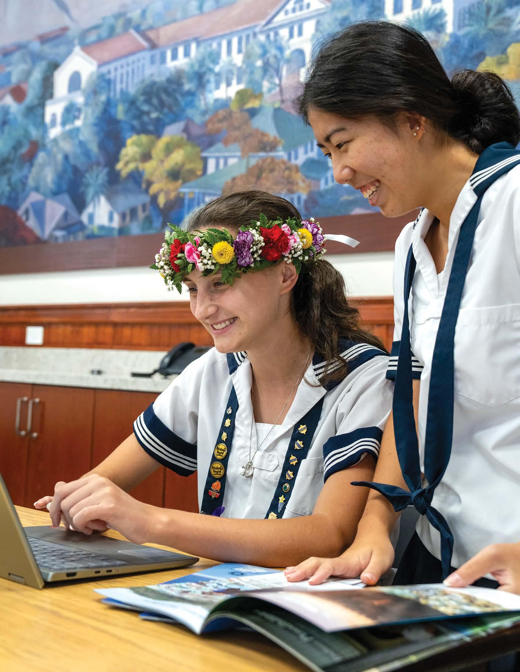 THIS SCHOOL YEAR has been one of accomplishments and exciting activities at the Academy. Senior Madison Iwashita, the Student Council president, was winner of the Distinguished Young Women of Hawaii competition. And, alumna Agnes Brown, ’19 was crowned Miss Aloha Hula at the Merrie Monarch Festival. In addition, our Trimble China Scholars Program resumed this year with six Academy students traveling to Fuzhou this fall to spend time at Hwa Nan Women’s College and take part in cultural exchange events. This spring the Academy hosted its frst Girls Golf Invitational which featured top high school golfers from across the state.