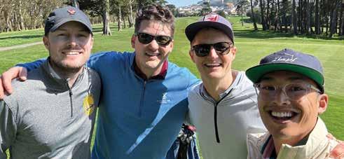 6 Alden Seabolt and his SHP ’06 classmates find an excuse to tee off at their Gator Classic golf outing at least once a year on various Bay Area golf courses. They play for petty money and pride, interspersing memories and jokes from their class. Of course, all of this is done in an atmosphere of wise freedom! They would love to have fellow Gators from all classes join them—reach out! Pictured L to R: Sean Jordan, Campbell Browne, Alden Seabolt, and Randy Ang.