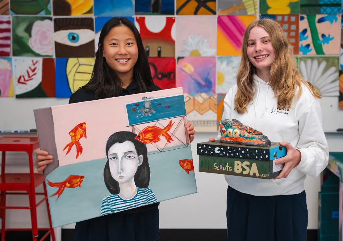 Both artworks were created in DiCioccio's Advanced Studio Art class, an elective available to eighth graders. Gold- and Silver Key-winning works were exhibited in San Francisco in April at The Nave Gallery at the California College of the Arts, and on the SHS campus in May at the P-8 Art Show.