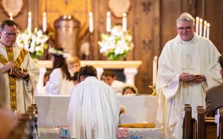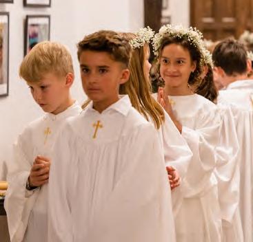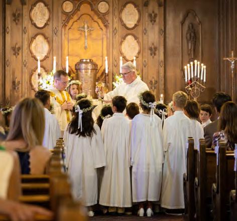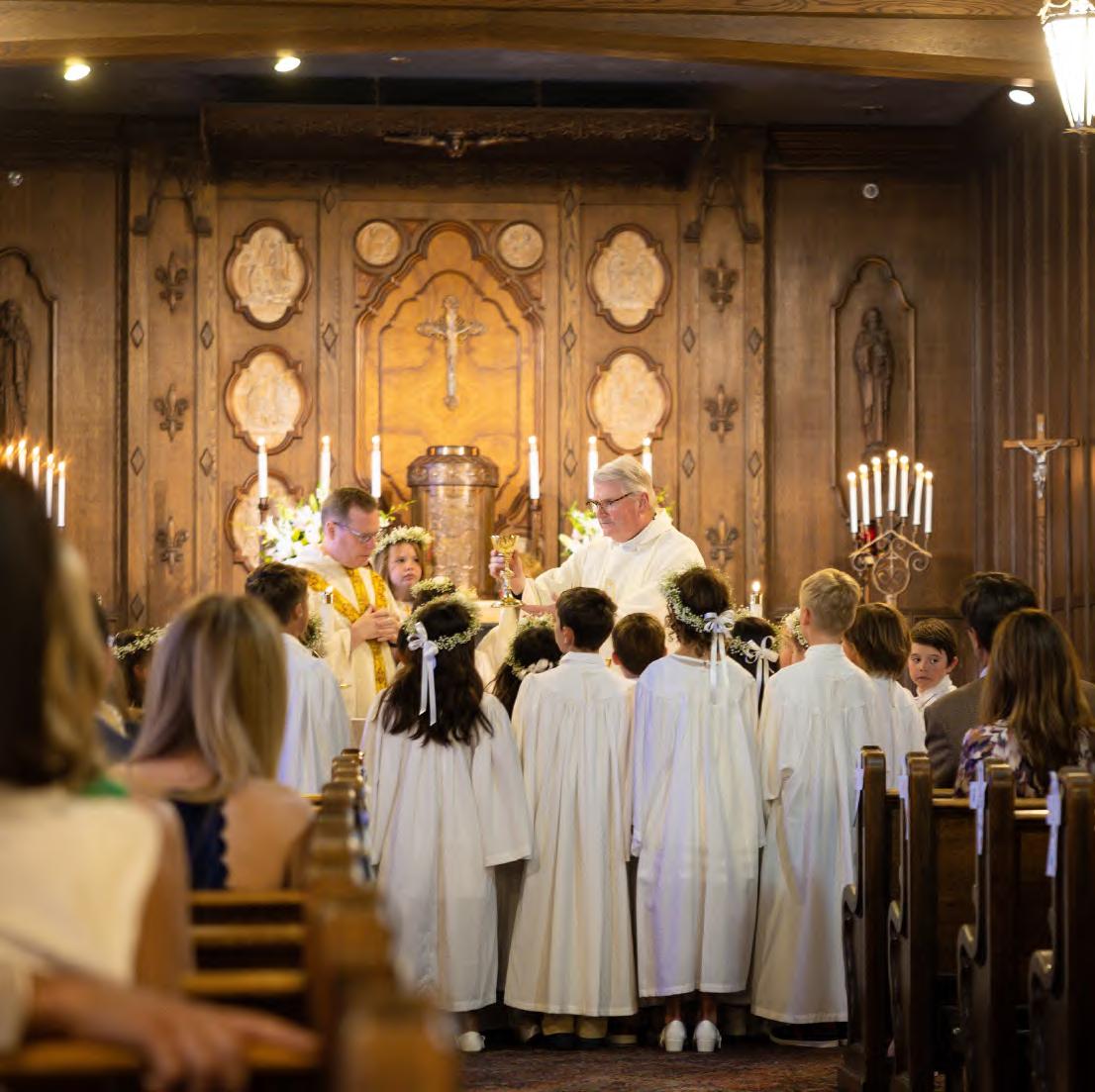 Second graders received the Sacrament of First Holy Communion in May in the historic Main Building Chapel, under the guidance of beloved Lower School Religious Studies & Sacramental Preparation teacher Chris Dyer (SHE ’63, CSH ’67) who has helped usher in this tradition for generations of SHS students. The ceremony was presided over by John Whitney, S.J.