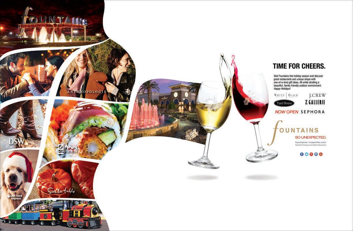 The right place, the right time. Let Fountains be your destination this Holiday Season. Discover great restaurants and unique shops with one-of-a-kind gift ideas. All while strolling a beautiful, family friendly, outdoor environment. Happy Holidays! Fountains at Roseville is located at the corner of Galleria Boulevard and East Roseville Parkway. fountainsatroseville.com