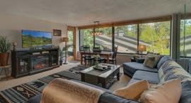 Second story home features a bright open floorplan with tons of natural light, gas fireplace & 2 bedrooms. The grounds are meticulously maintained and offer a serene environment with waterfall and streams.