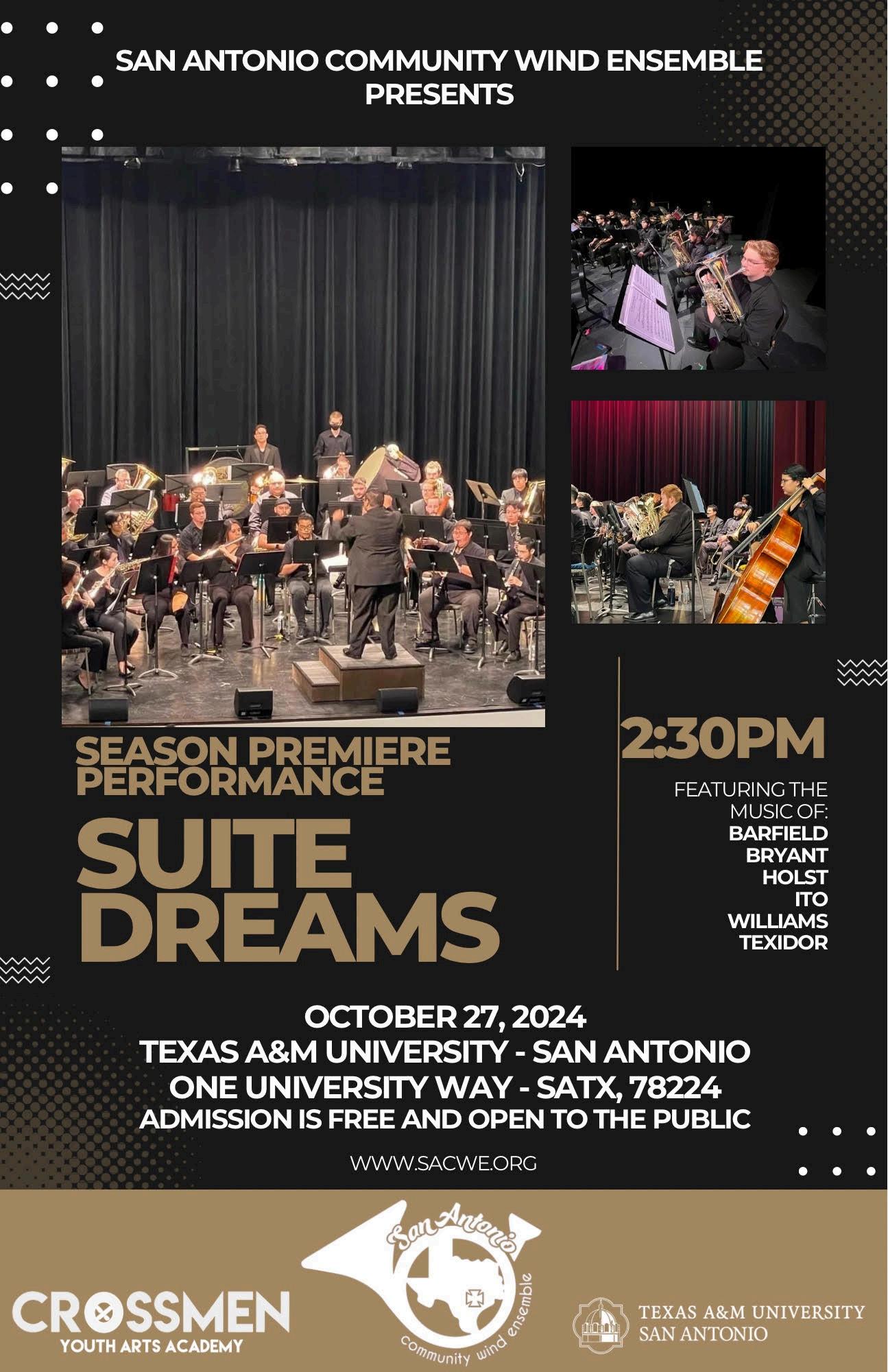 The San Antonio Community Wind Ensemble and the San Antonio Jazz Collective align their mission to that of Crossmen Youth Arts Academy by striving to enrich and shape the lives of young musicians and performers through the performing arts. Family, honesty, perseverance, dedication, independence, interdependence and excellence are taught and practiced by each and every member at Crossmen, SACWE and The Collective.