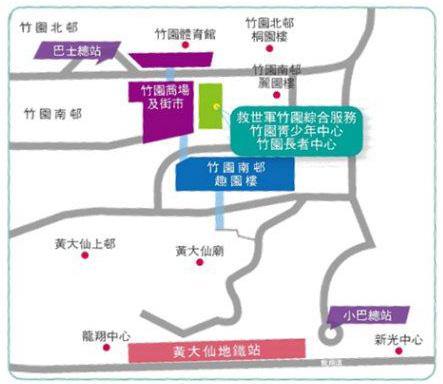 救世軍竹園綜合服務 竹園青少年中心 地址:九龍黃大仙竹園南邨社區中心1-4樓 電話:2351 5321 傳真:2351 5303 電郵:cycyc.yfc@hkm.salvationarmy.org 中心網址: