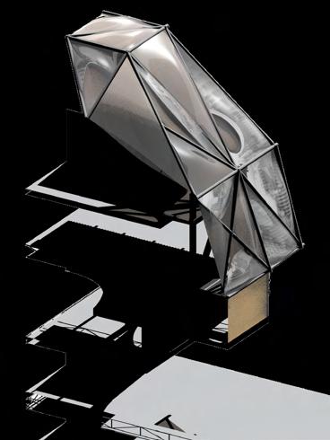 Steel is the primary structure used, to be able to support a dramatic cantilever over the outdoor amphitheater. The ETFE envelope mimics a cloud-like form, with the goal of conveying transparency and a weightless/ seamless transition for newly arrived immigrants to chase their version of an American Dream