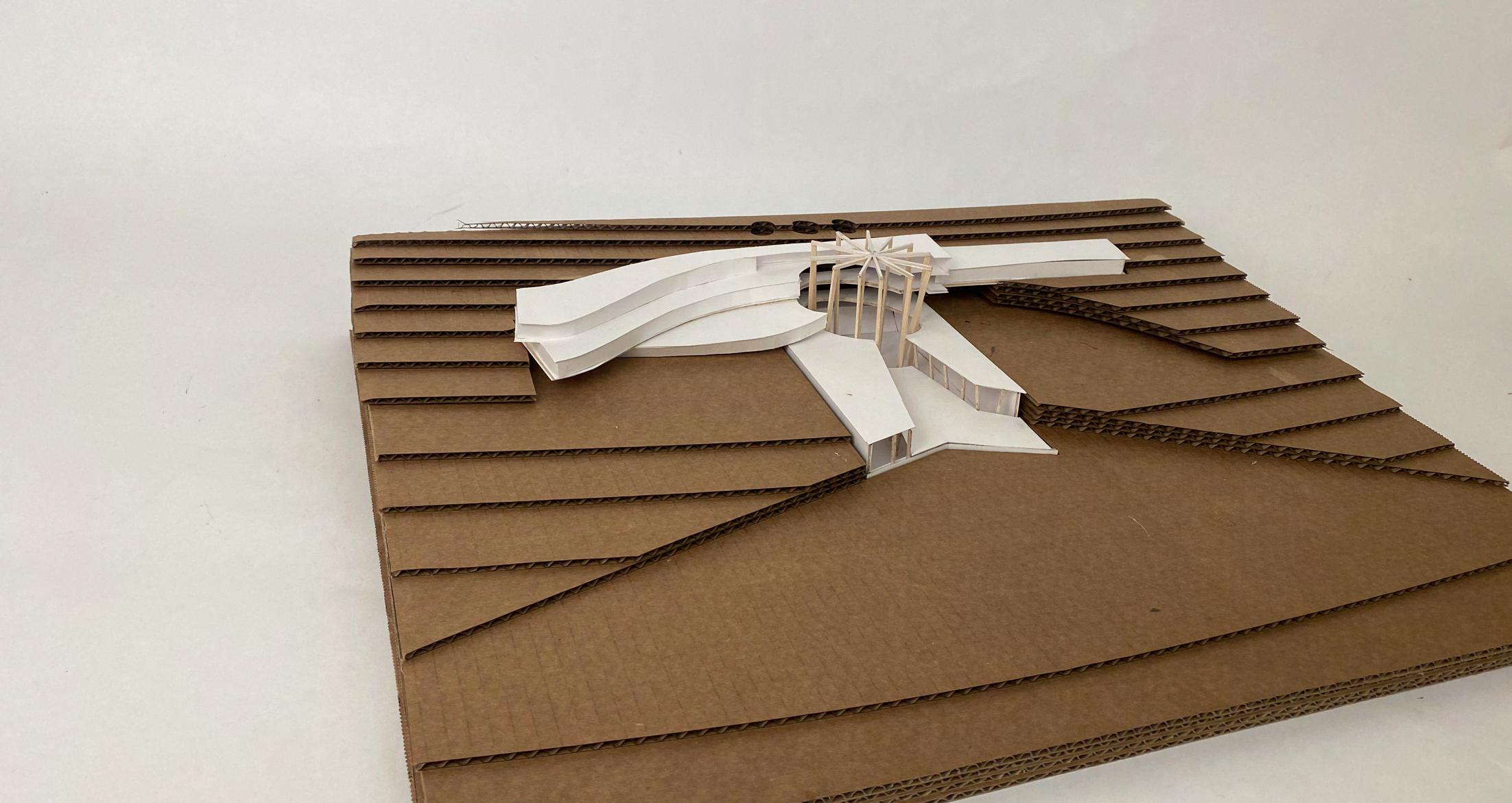 The Grand Ave parking structure is located near San Luis Obispo’s Performing Art Center, and freshman Yakityutyu dorms. The project proposes to put a canopy over the structure to provide shading and create outdoor multiactivity spaces on the top floors. The goal of the canopy is to harvest solar energy using maximum photo-voltaics on the roof as well as louvers on the facades. Additionally, it channels water into the proposed ‘Arroyo Recreo’ low impact development of the land to improve bioretention. Designed in collaboration with Asher Twu & Merari Banuelos. All drawings on this page by Saddha Zaw.