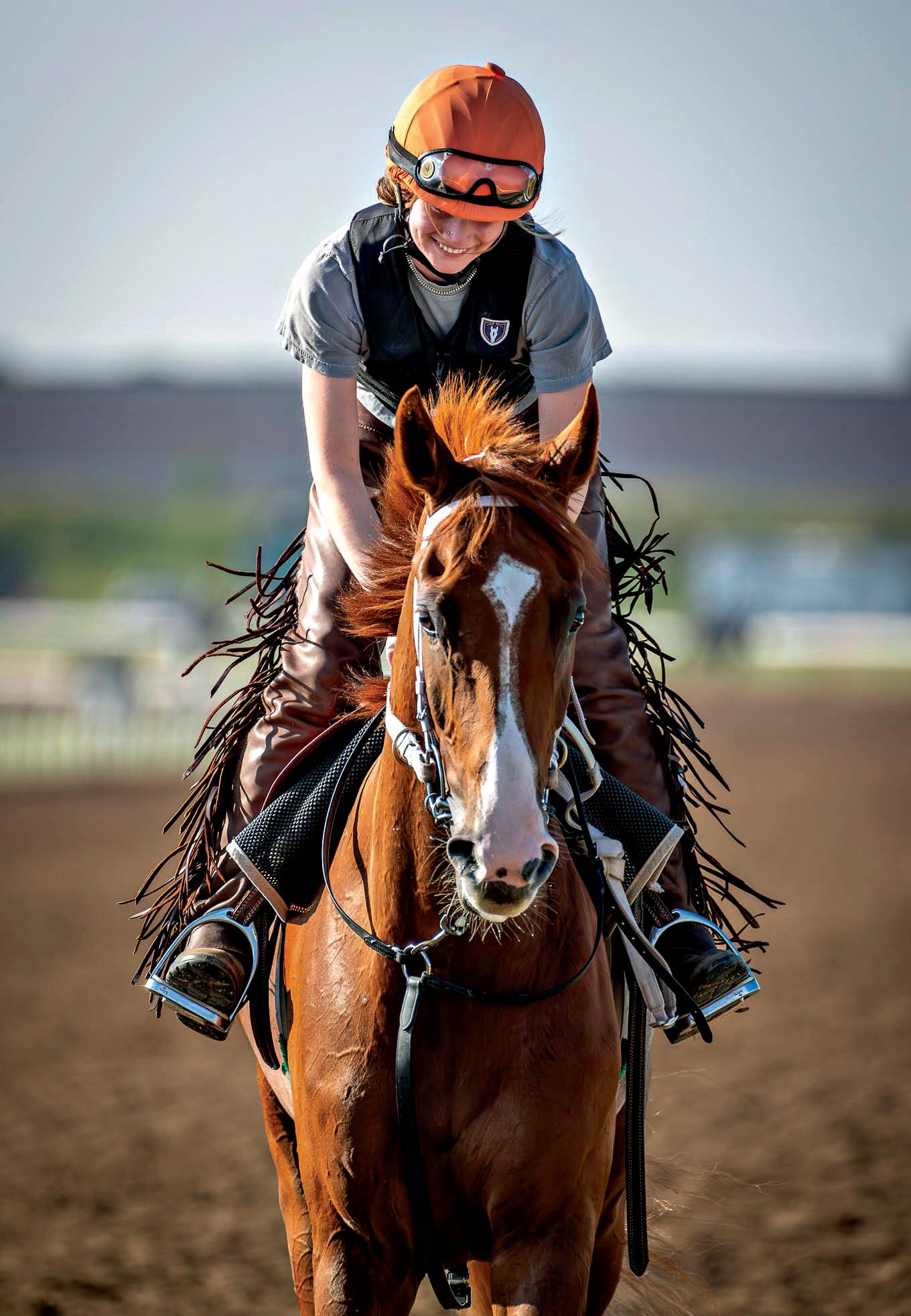 The toolbox of an exercise rider is vast and diverse. Working with Thoroughbreds competing on the racetrack requires comprehensive technical training, conditioning, and a professional certification. Although an advanced education equips them with the knowledge and skill to optimally care for each horse they work with, they’re also encouraged to think outside of the box. Emphasis is placed on learning each of the horse’s personalities and figuring out the best way to train them and make them happy.