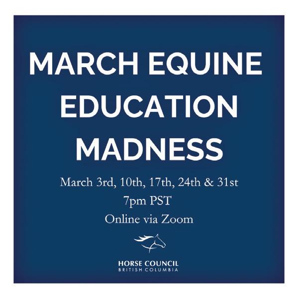 Amber Zierath, Melody GarnerSkiba, Laureen James, Patricia E. Skinner, Hoof Geeks, Britain MillsDawes, Horsey Ladies Okanagan, Horse Council British Columbia, & Club News