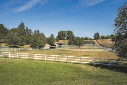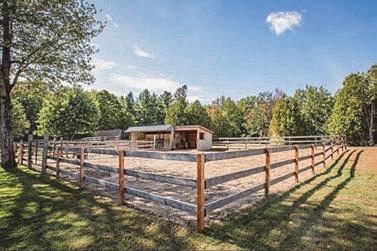 For the horses is a stunning and fully renovated stable with five stalls and a 28’ x 20’ room for hay or storage. This building is two-stories with a tack room, lounge and restroom on the main floor. Upstairs is a spacious apartment with one bedroom, one bathroom, a living room and kitchen. Just outside are triple and double horse shelters, seven paddocks and an outdoor training area. Electricity is available in some paddocks and wiring is available for installing an electric gate.