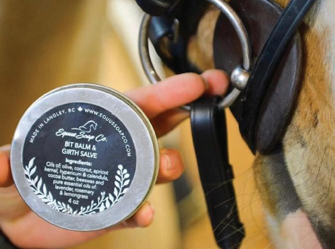 04. And for your horse a bit of Equus Bit Balm and Girth Salve is healing help. For horses with sensitive mouths, girth rubs, cuts and abrasions. Calendula oil is a powerful antiinflammatory known for reducing itchy and inflamed skin. Hypericum oil reduces pain from cracking and chapping. Coconut and olive oils deeply moisturize and balance skin pH and the essential oils leave your horse smelling fresh and fabulous! Made locally in Langley, BC