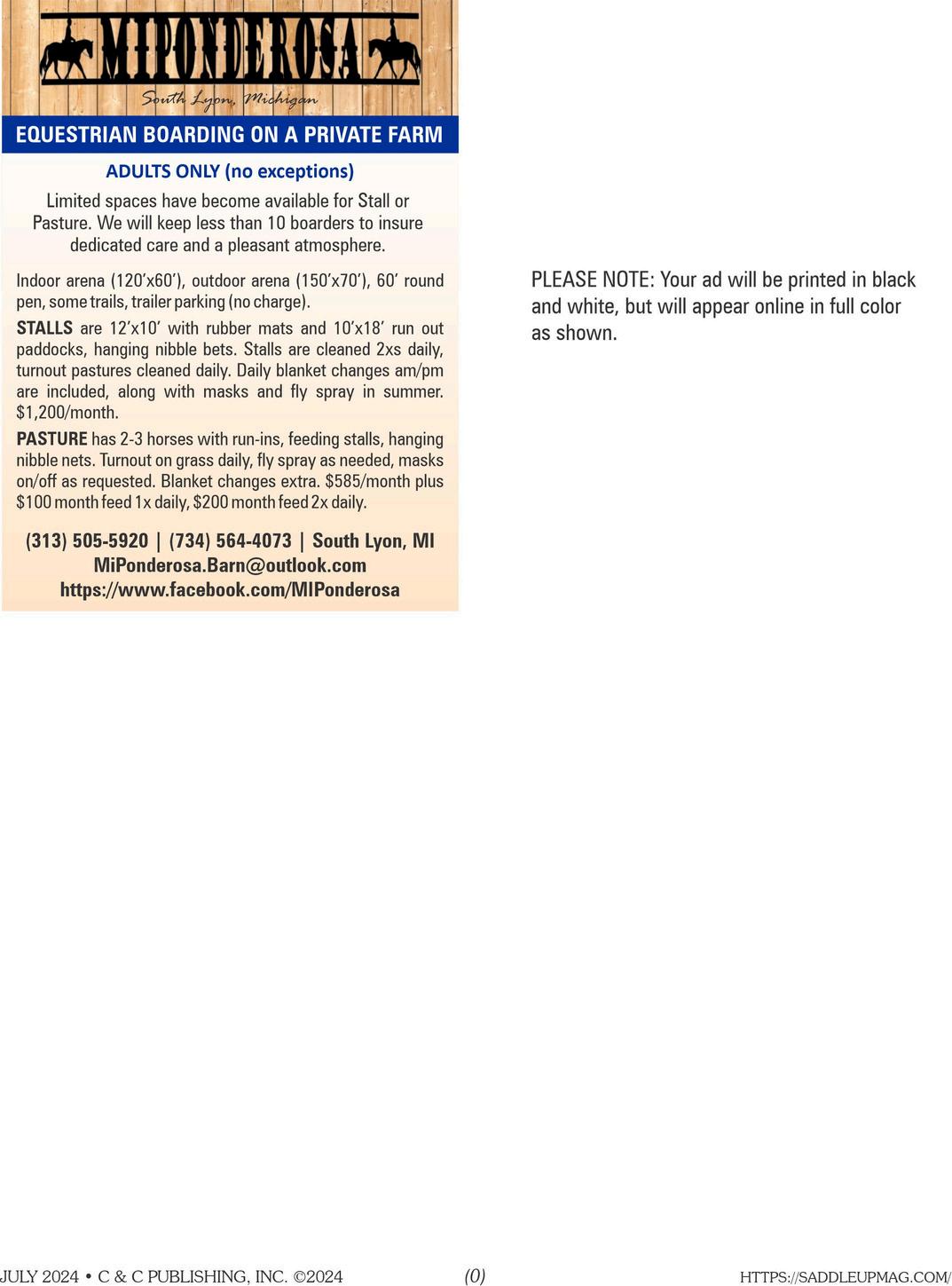 We produce two issues of Saddle Up! Magazine each month; one printed and one in digital format for online. Non-profit equine groups can now receive one full page, full color ad in our online edition FREE of charge.