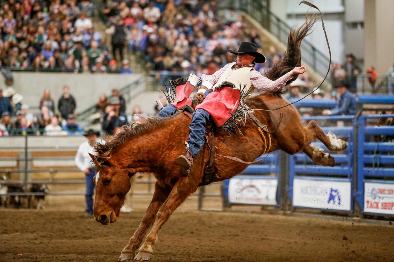 Thrill to the action of the Michigan High School Rodeo Association Rodeo on Friday evening, as well as the unique combined Mounted Police Color Presentation each day On Saturday we have the exciting Brave Horse CBD Extreme Cowboy Challenge and a Mane Event featuring the Great Lakes Championship Bull Riding Association.