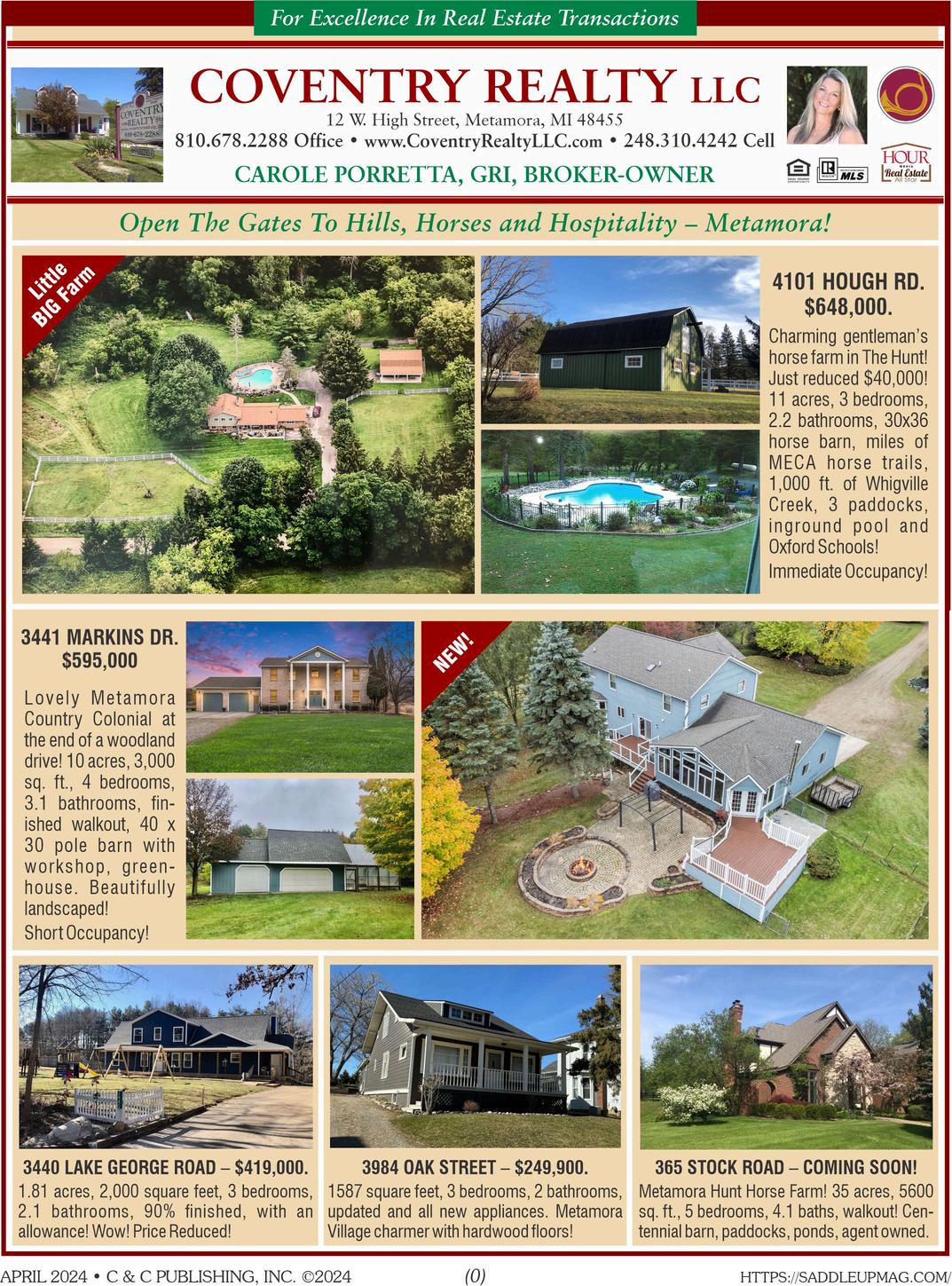 Over30yearsof experienceintrimming,shoeingandcorrective shoeing Askaboutteethfloatingtoo!Serving OaklandCountyandsurroundingcounties. JOHN PETERSON FARRIER – 248 303 6498 Milford, MI (Oakland) (S-09/26) HoofCareMatters!