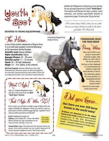 Saddle Up! Magazine is featuring a new section for our younger equestrian’s titled “Youth Spot!” This section will feature fun facts, puzzles, word searches, and articles specifically tailored to equestrians ages 14 and under. Enjoy the fun!