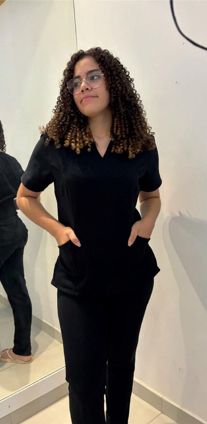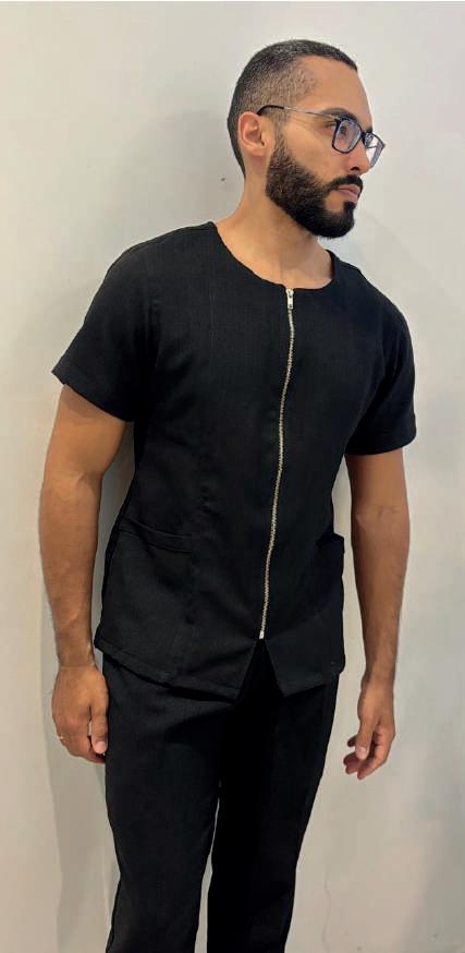 O Scrub Aura foi criado para mulheres que valorizam a leveza da simplicidade com o toque refinado da alta-costura. Com corte regular, a parte superior é mais solta ao corpo e traz dois bolsos discretos na parte frontal. A gola oval aberta com um delicado recorte em V confere um charme sutil ao visual, detalhe que se repete nas mangas, finalizando a peça com um acabamento único. A calça slim, com marcações vincadas, reforça a elegância do conjunto e garante um caimento alinhado e confortável. Um modelo pensado para quem acredita que o essencial pode – e deve – ser sofisticado.