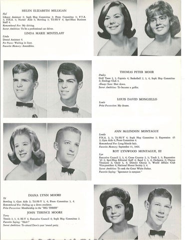 DIANA LYNN MOORE Di Bowling 3; Gym Aide 2; Tri-Hi-Y 3, 4; Prom Committee 3, 4. Remembered For: Falling up a down escalator. Prize Possession: Membership in the "BIG THREE"
