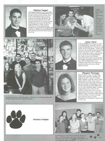 Matthew Taggart Tag,Tagnuts RemFor:Navy ,ScotlandAct: Lacrosse,Water polo FavMem:Being New, Living wit Grant ,North Carolina , Road Trips wit Endo,Beech,Time wit Court, Crusin in the Lincoln,THE BEAST , My Duck,Mr.Tuxedo,Sulls Down the Hill, TommysHotTub of Luv,Tommy Loving His Mommy,Food Lion,Prom ,Scottish Pride,GodfatherVs. Rudy , GoNavy , VMI,times at Grants, BGs, Bowling, Epaditamitus,Coop,OHYEAH! ,Mcgarrigle s Gulf Crew, Will:burried NakedMess:My Mom,Dad,bros you're the best,Courtney I Love You,