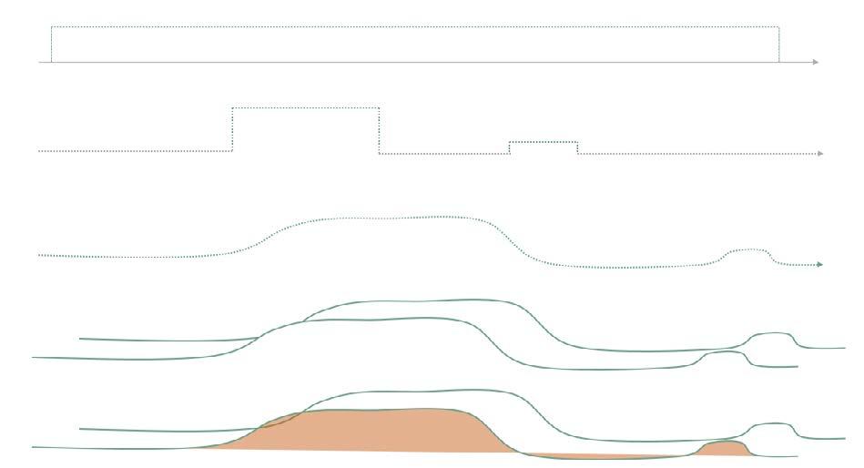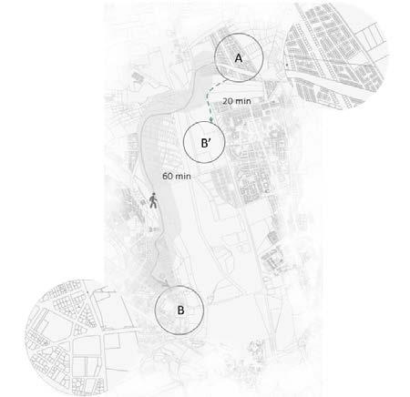 Ce parcours sera donc même une solution temporelle optisant le rapport entre le mouvement de l'usager au sein de son territoire et le temps qui lui est attribué. A travers les differents noyaux urbains qui seront implantés dans la ville, le temps d'accès à tout point de la ville sera réduit : au lieu de faire 1h pour atteindre un point B, il y aura un point B' necessitant que 20 min.