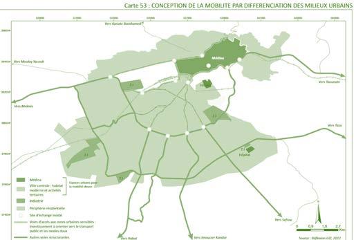 Comme on a pu le constater par les différentes cartes du SDAU, l'attractivité est canalisée au centre de la ville de Fès, les divers déplacements sont plus fréquents vers ce centre.