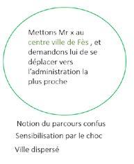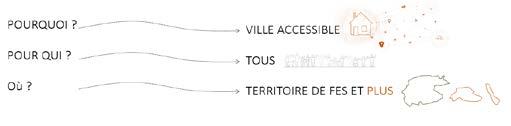 On a compris à travers differentes analyses que la ville de Fes souffrait d'un disfonctionnement urbain causé par une mal organisation du mouvement, dans tous ses aspects : pieton, carrossable, cyclabe..., inadapté à son usager et impraticable par les personnes handicapées, ceci fait comprendre qu'il faut agir d'abord sur l'existant, en apportant une réponse simple à l'accessibilité et rappeler par un simple parcours accessible la necessité d'offrir le droit d'accès et de pratique de la ville qui est des plus basiques.