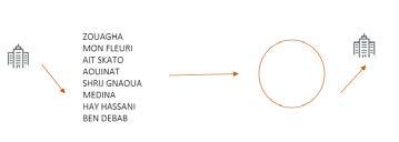 Le parcours se developpera de façon à travers les differentes ligne de bus du quartier et appliquera une translation des differents équipements du centre vers le quartoier Oued Fes : dispensaire, salle polyvalente (loisirs), centre de formaton, centre de rééducation.