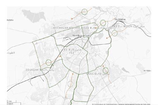 Pour réponde à la problématique et à l'ensemble des questionnements et enjeux posées dans les précédentes parties, l'intervention se présentera de toute évidence dans toute la ville de Fes, et essayera de traiter le problème d'accessibilité aux niveaux de toutes les artères principales et des circuits secondaires les plus pértinents, à travers une analyse urbaine pointant les anomalies de la ville.