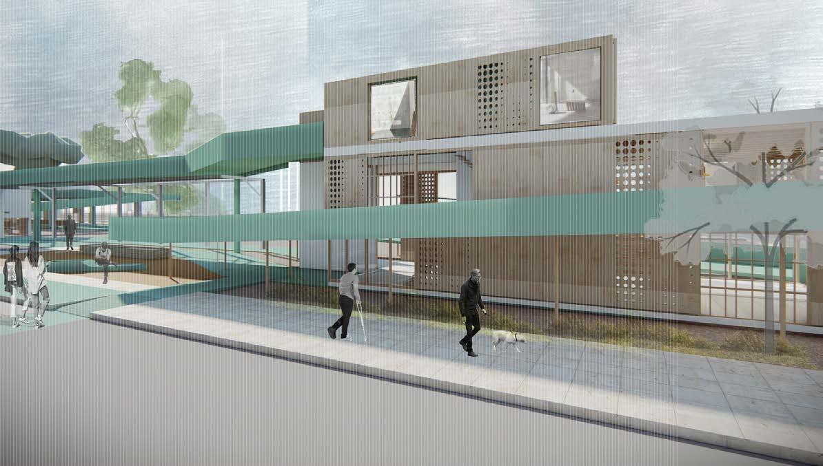 La réponse architecture se fera dans un premier lieu à travers la mise en place d'un parcours urbain facilitant l'accessibilité douce à tous et projetant une visilibilité commune sur les solutions des problèmes d'accessibilité même au niveau du territoire national, en guise d'emblème.