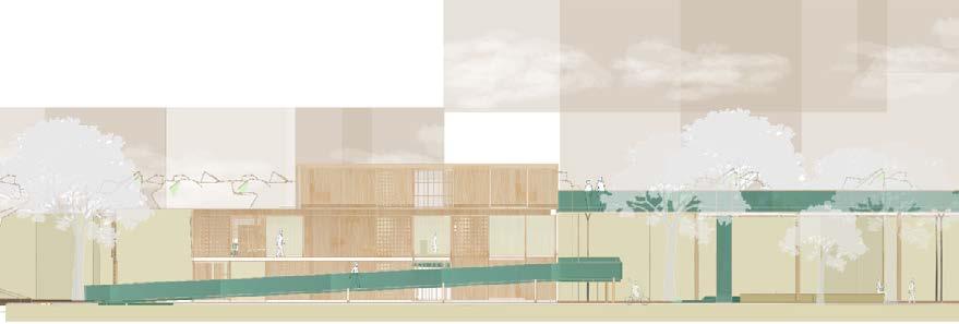 En utilisant différents niveaux sur le site d'implantation de ces équipements, par les différentes hauteurs et les éléments naturels (arbres, matériaux) chaque hauteur peut offrir une séquence spécifique et des vues différentes, nous pouvons considérer ce facteur comme des noyaux de connexions.