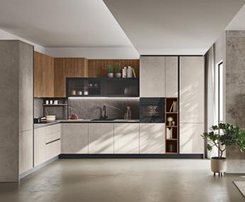 Ces lignes simples et claires inspirent un environnement domestique dans lequel tout se combine pour créer des moments inoubliables avec la famille et les amis. L’environnement est caractérisé par un mur central autour duquel se développent des armoires et des espaces de vie. Les éléments hauts sont façonnés pour permettre à la cuisine de se transformer d’un espace dédié à la préparation des aliments en un espace repas.