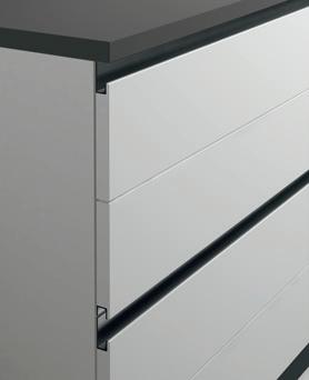 Graphic, horizontal lines decorate the base unit with the new Evolution System modularity. One module is divided up into three drawers with different heights: H 12 cm - 24 cm - 36 cm.