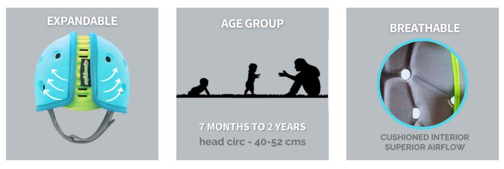 Multi-Award Winning lightest flexible soft protective headgear for babies and toddlers learning to walk
