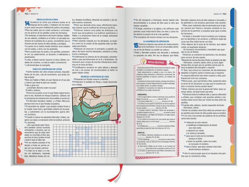 – Recuadros a lo largo de la Biblia clasificados en 8 categorias, que presentan curiosidades, ideas y actividades para reflexionar y completar.
