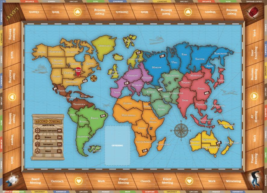 Trabaja junto a tus amigos para cumplir con la Gran Comisión, llevando el evangelio a través de un mapa que incluye 57 asociaciones y 10 divisiones.