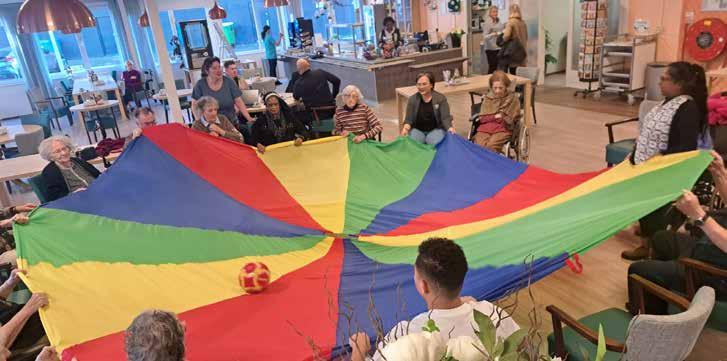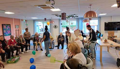 vrijwilliger breng glimlach op gezicht bewoners.