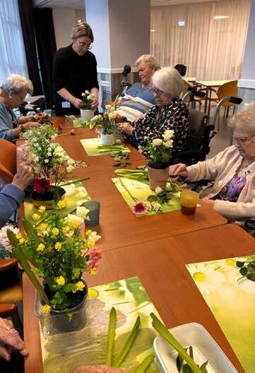 De bewoners van Westcamp zijn gezamenlijk gaan bloemschikken. Zij hebben een mooi boeket in elkaar geflanst. Zij hebben genoten en zijn allen trots op hun boeket.