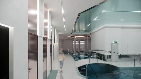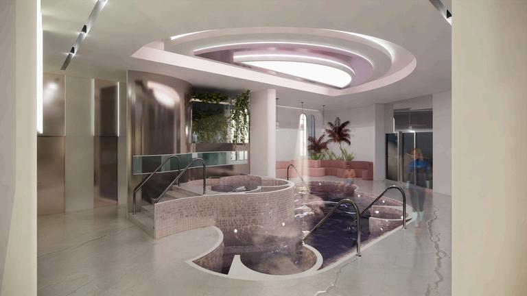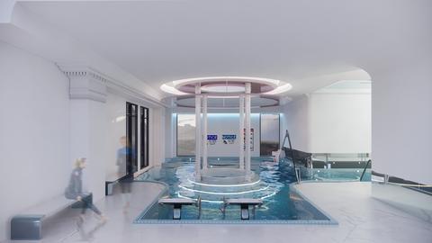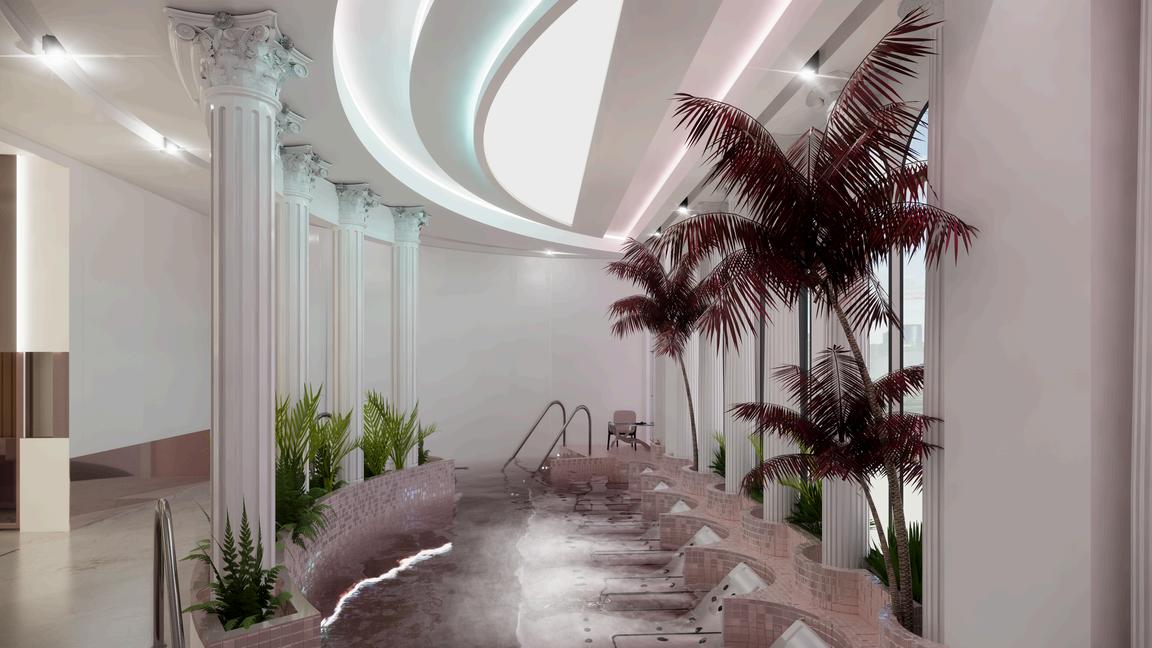 This alternative clinic is designed under the concept of "perception of another dimension that we desire," is to help the user relax and heal their body from fatigue. The beauty of a Paradapia hydrotherapy clinic lies nly in its physical aesthetics but also in its ability to create a welcoming and supportive environment where nts feel empowered to prioritize their health and well-being. And this clinic would likely have specialized pools ned for different types of hydrotherapy treatments. These include hot water pools for relaxation, cold water p for stimulation, and pools with water jets for massage therapy.
